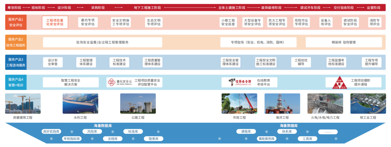 佳保安全拥有专业的熟悉建设工程全流程安全管理的技术人才梯队,可长期派驻项目建设现场,提供建设工程全流程的现场技术服务和人才支持、专业工程建设安全类人才猎头及服务。目前在全国各地的房建、水利工程、核电工程现场派驻近百名专业安全、质量工程师及专家。