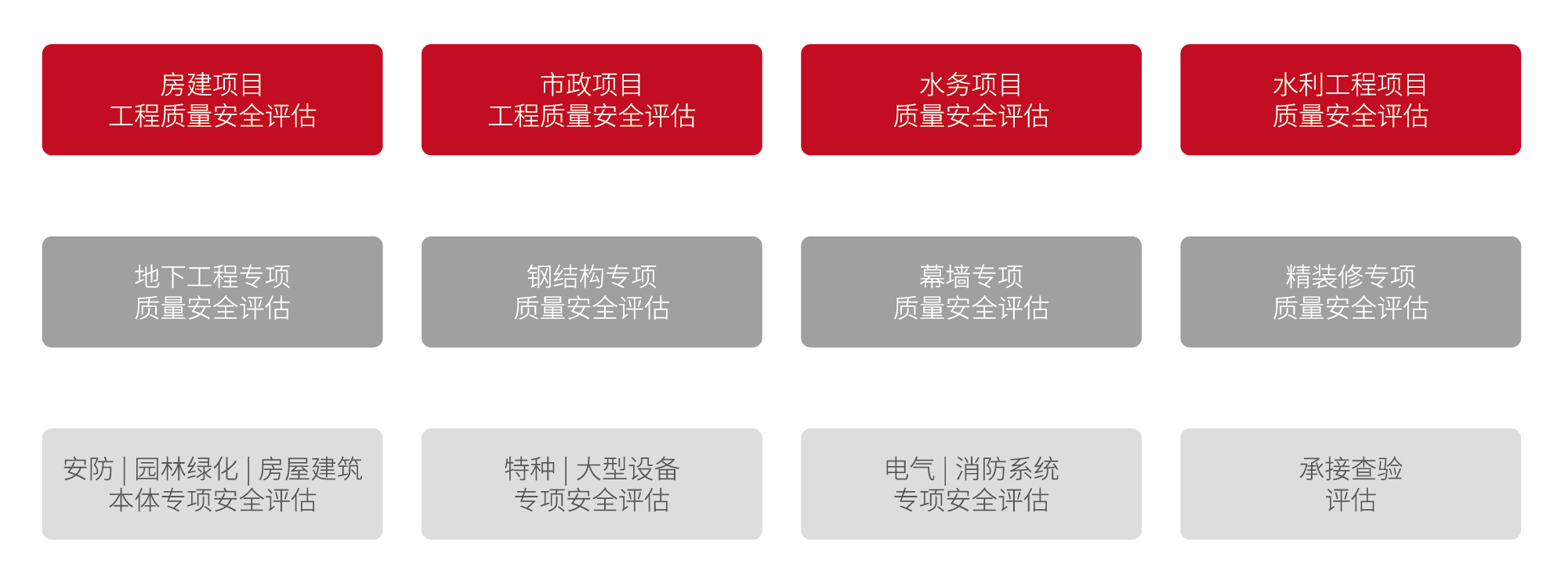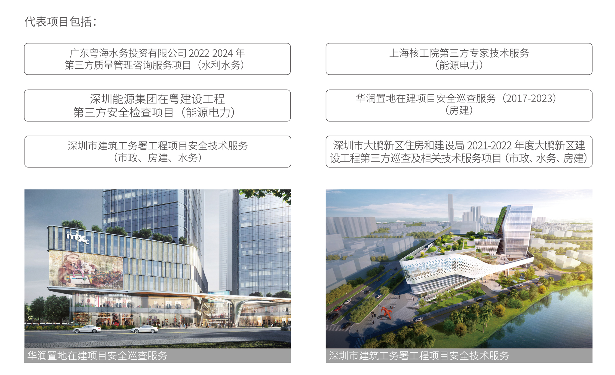项目团队作为独立第三方,对处于不同阶段的、不同类型的在建工程项目,开展现场安全质量评估,采用对项目实体、工程设备等进行随机取样及抽查测试,对项目的安全、质量等方面存在的风险进行评价,同时对内业管理资料、管理输入和输出进行合规性履责性分析评估,提出系统性改善措施与建议。