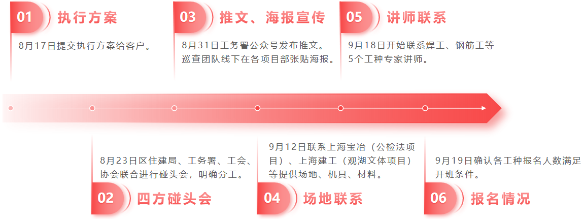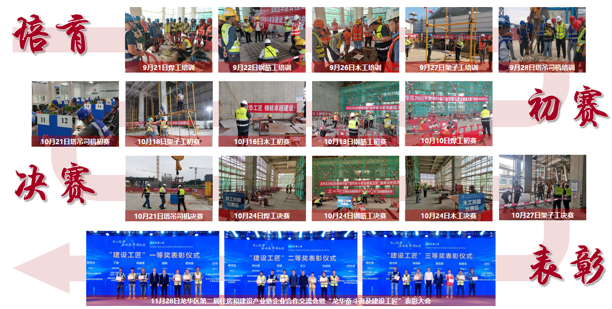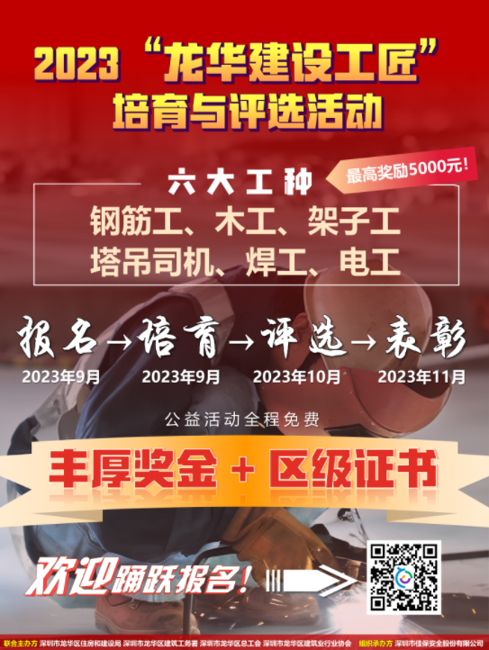 本项目面向龙华区所有在建项目一线建筑工人开展培育与评选活动,评选出电焊工、钢筋工、木工、塔吊司机、架子工5大工种“龙华建设工匠”,引导工人提升职业素养和职业技能,协助甲方完成年度安全教育培训工作目标。