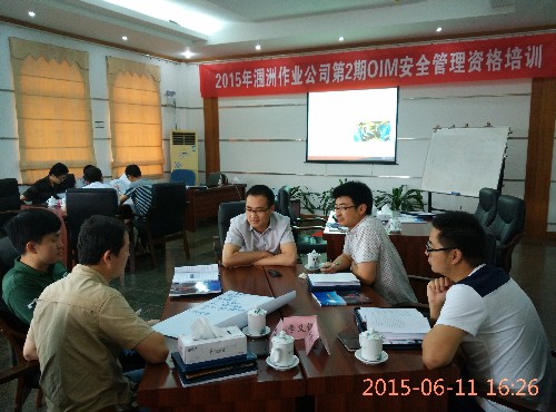 2015年6月9日举办了为期5天的培训,培训人员主要包括某作业公司油田总监、安全监督、生产监督、平台长等;培训内容主要包括海洋石油发展史、OIM的权责利、安全管理理念、风险评估与控制方法、作业控制、设施管理、典型事故案例剖析以及安全文化建设规划等。